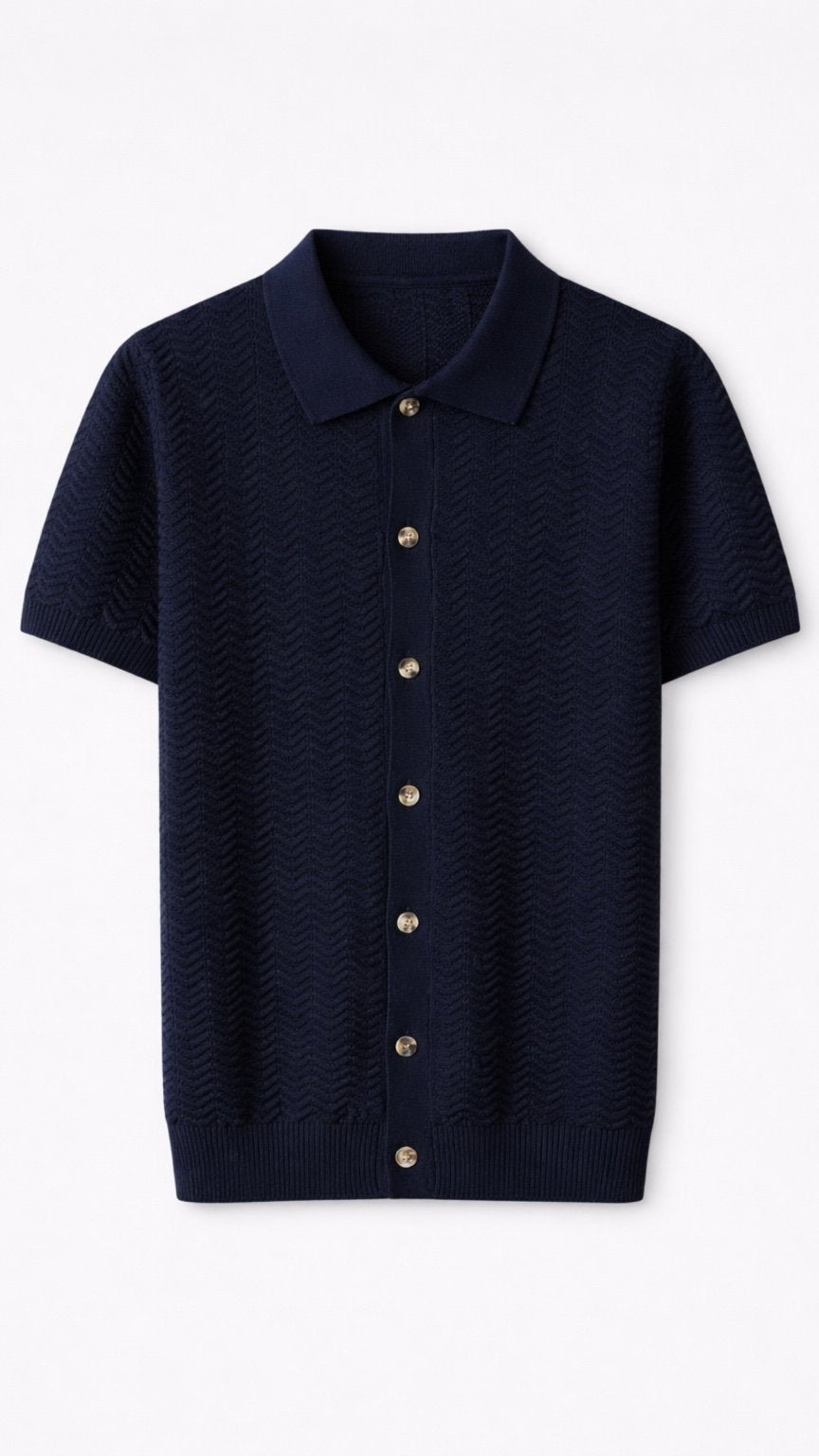 Modern full placket with premium contrast buttons — combining polo comfort with shirt elegance.