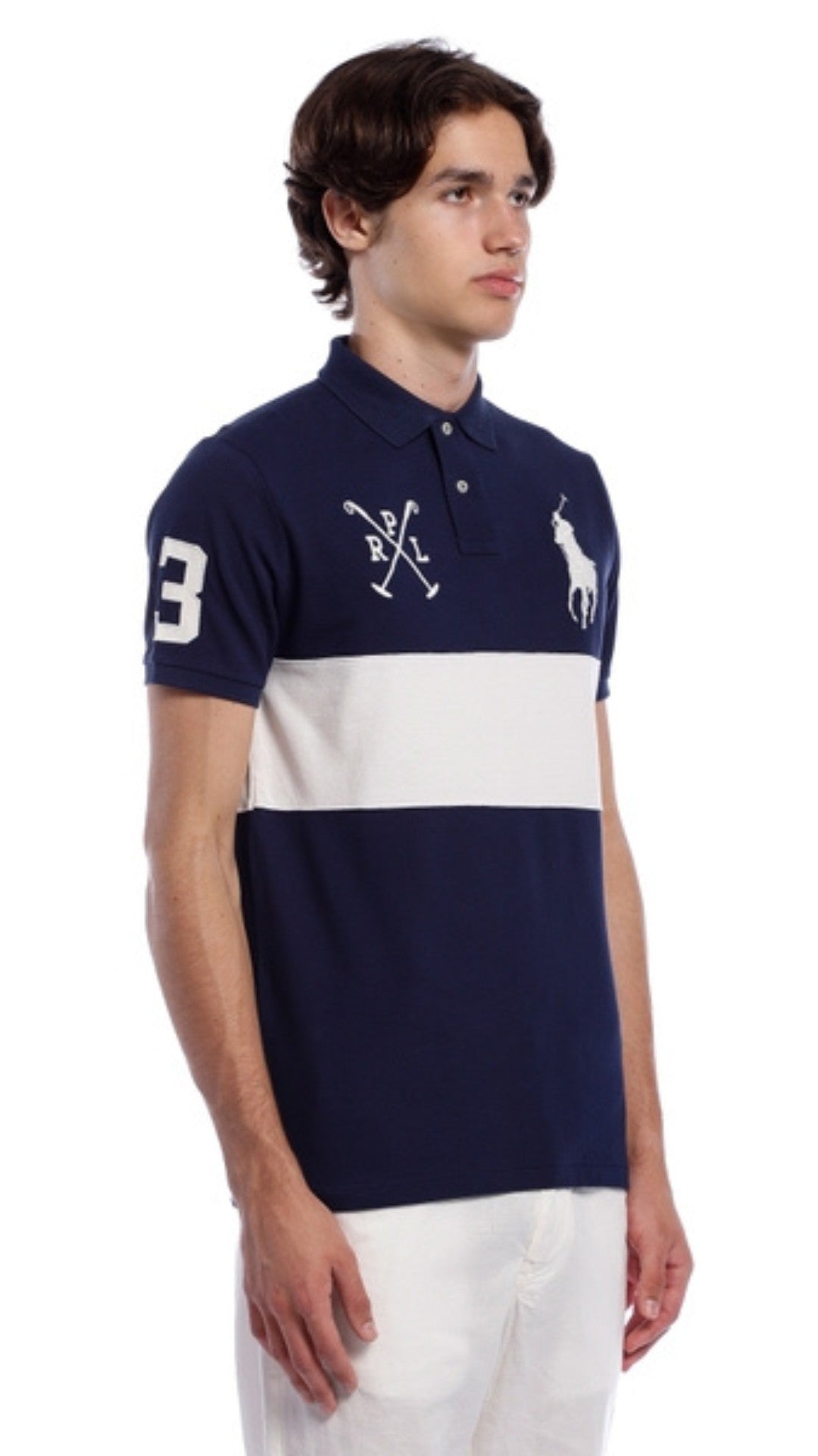 - Signature Embroidery: Large embroidered polo rider logo on the chest with crossed mallets design detail.