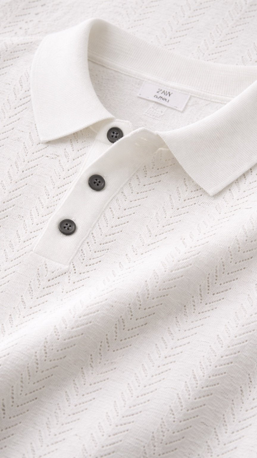 Premium Textured Knitted Polo – White