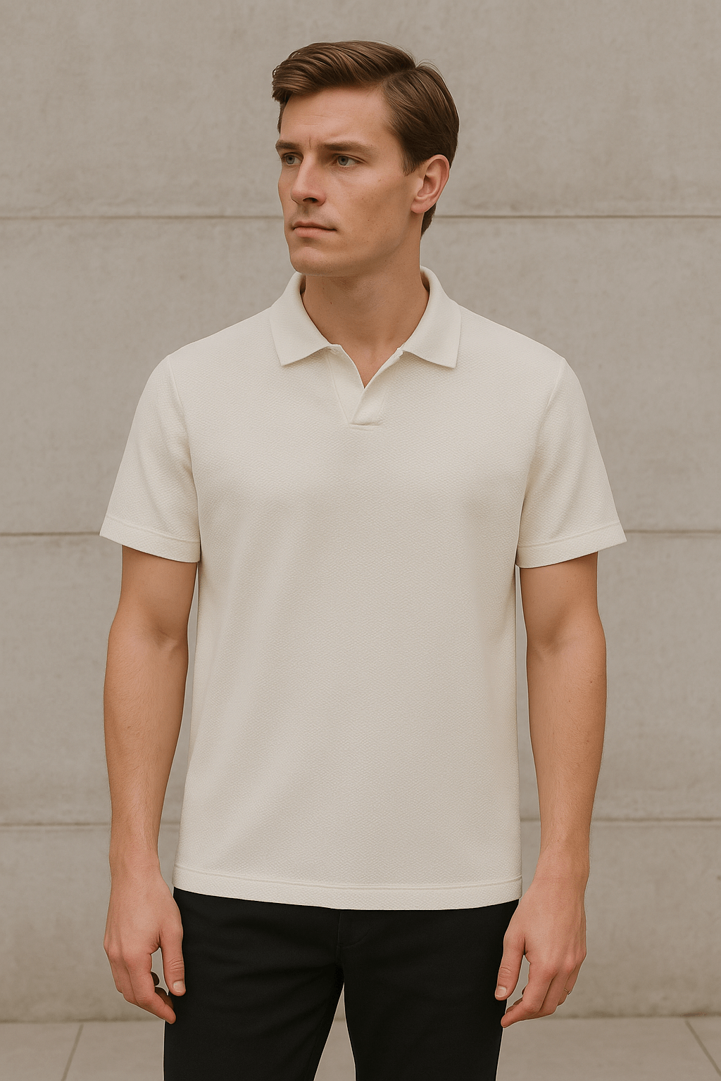 Self Knitted White Polo J-Neck